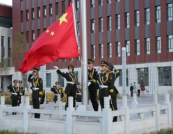 仪式伊始,学院党委副书记胡菊宣布升旗仪式开始,全体师生肃立。在庄严的氛围中,国旗班队员迈着铿锵有力的步伐护送国旗入场。随后,伴随着雄壮的《义勇军进行曲》,鲜艳的五星红旗冉冉升起,全体师生行注目礼,高唱国歌,表达对祖国的无限热爱与崇高敬意。